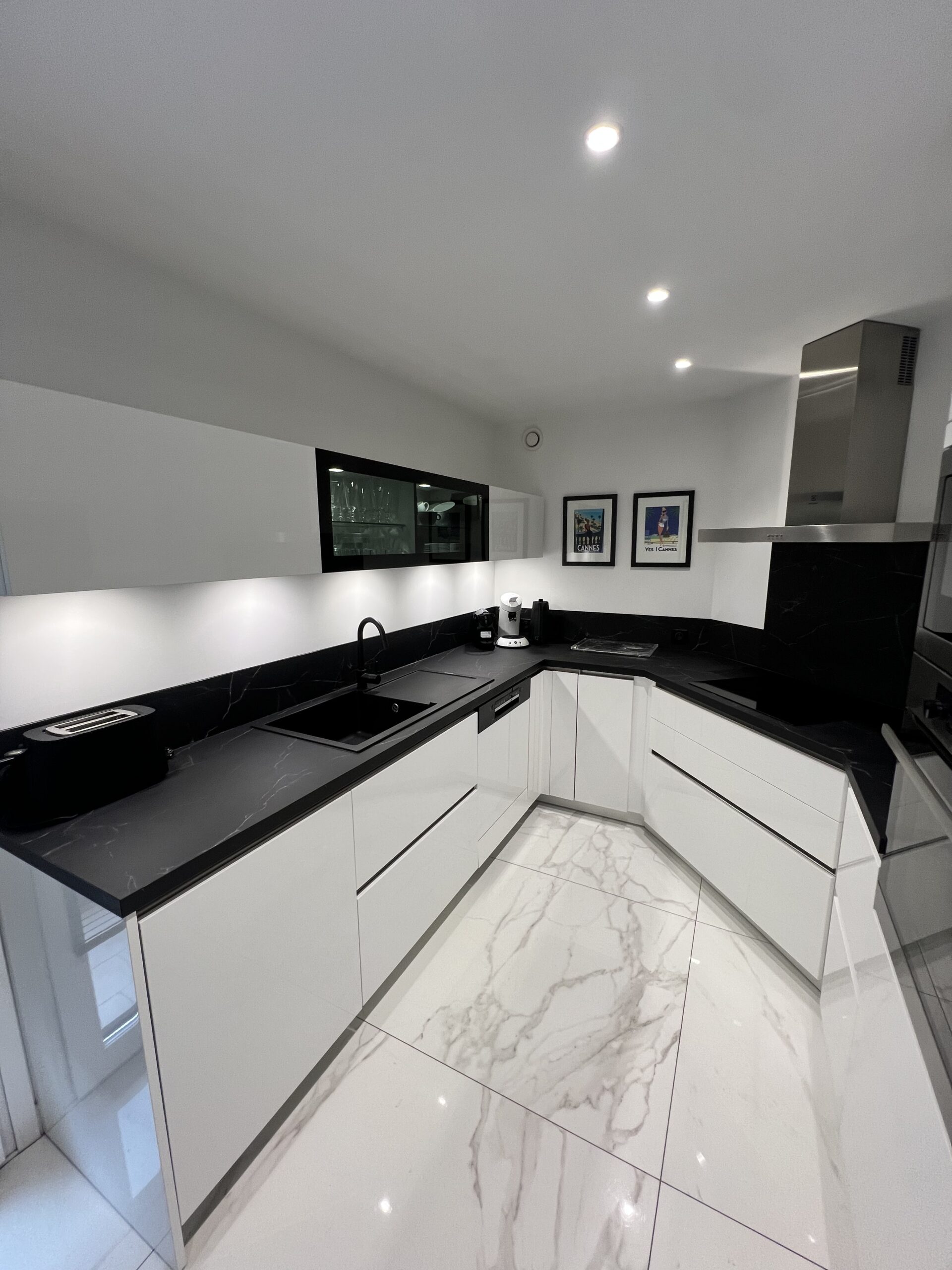 Cuisine : plaques, four, micro-ondes, lave-vaisselle, machine à laver, machine à café.