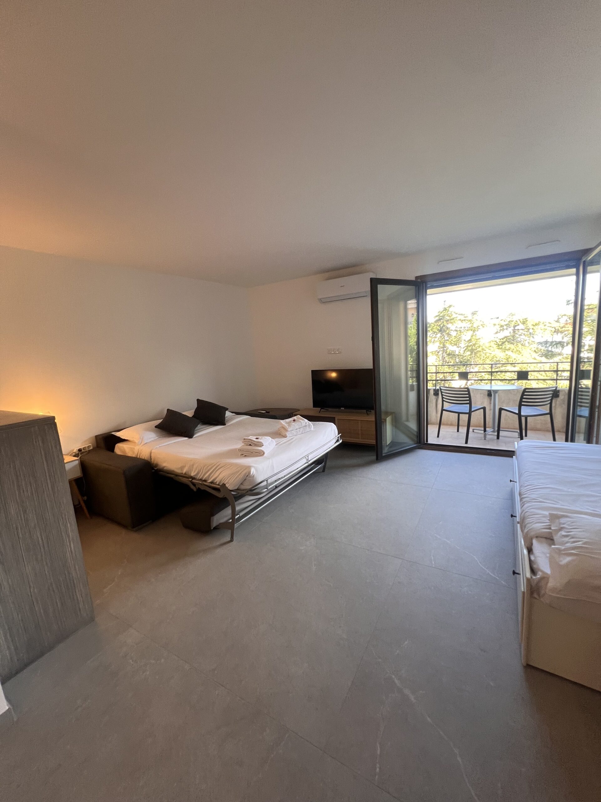 Studio de 35 m², refait à neuf, situé au 5ᵉ étage d’une résidence avec gardien, en plein centre de Cannes.